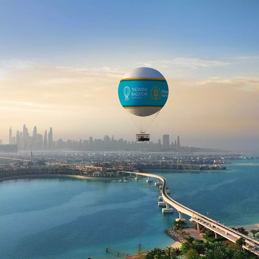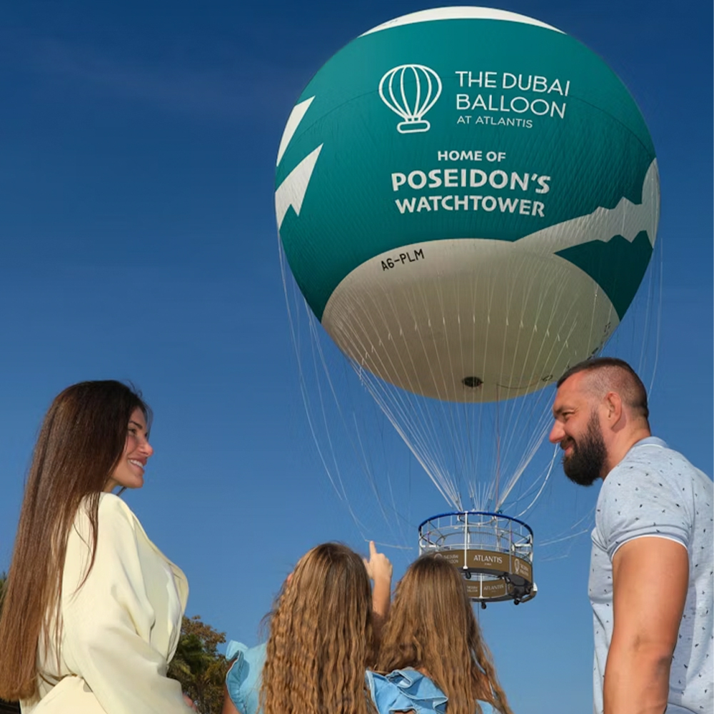 Atlantis’teki Dubai Balloon ile Dubai’yi nefes kesici bir perspektiften deneyimleyin. Bu, ikonik Palm Jumeirah’ın 300 metre yukarısına kadar yükselen, bağlı bir sıcak hava balonu yolculuğudur. Atlantis The Palm’da bulunan bu eşsiz cazibe merkezi, şehrin silüetinin, Arap Körfezi’nin ve Burj Khalifa ve Burj Al Arab gibi simge yapıların panoramik manzaralarını sunan 10 dakikalık uçuşlar sunmaktadır. Balon, bağlı olduğundan güvenli ve sakin bir yükseliş sağlar, göz alıcı fotoğraflar çekmenize ve unutulmaz anılar yaratmanıza olanak tanır. Bu ikonik deneyimi kaçırmayın – Atlantis’teki Dubai Balloon’a katılın ve ziyaretinizi hemen ayırtın!