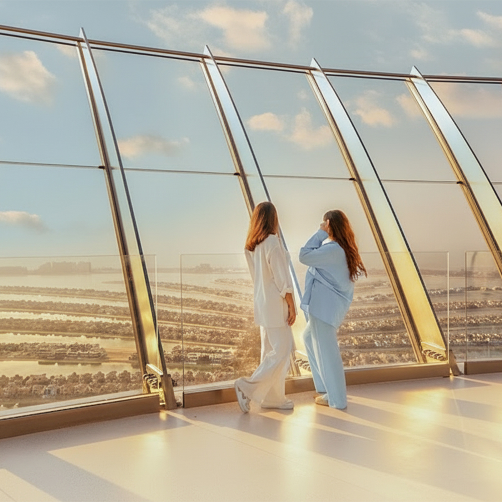 Palm Jumeirah’taki The View’dan Dubai silüetinin, Palm Jumeirah’ın ve Arap Körfezi’nin nefes kesen panoramik manzaralarını deneyimleyin. Palm Kulesi’nin tepesinde yer alan bu gözlem güvertesi, büyüleyici 360° manzaralar, etkileşimli teleskoplar ve şehrin simge yapılarına benzersiz bir bakış açısı sunuyor. Gezi, fotoğrafçılık veya aile ve arkadaşlarla unutulmaz bir gezi için mükemmel olan bu yer, Dubai’yi yukarıdan görmek isteyen herkes için mutlaka ziyaret edilmesi gereken bir yer.